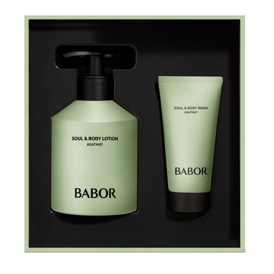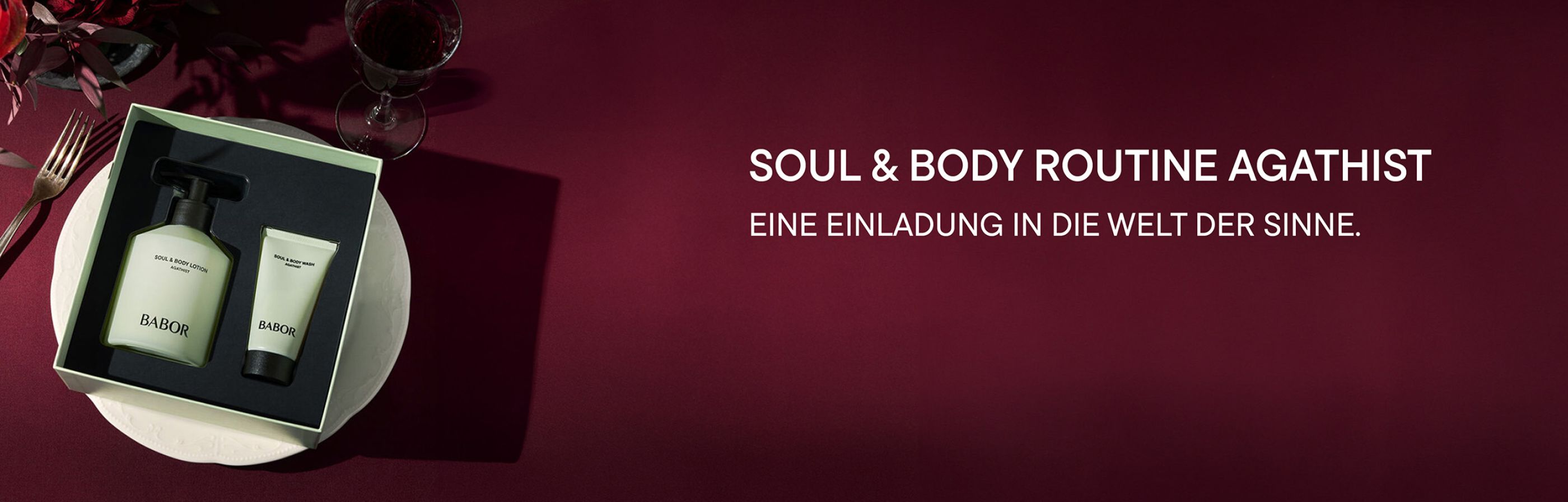 Erleben Sie eine verwöhnende Body-Routine, in der wirksame Pflege auf wohltuende Aromatherapie trifft. Die schnell einziehende Soul & Body Lotion (250ml) und das cremig aufschäumende Soul & Body Wash (50ml) entführen Körper und Sinne auf eine harmonisierende Reise.